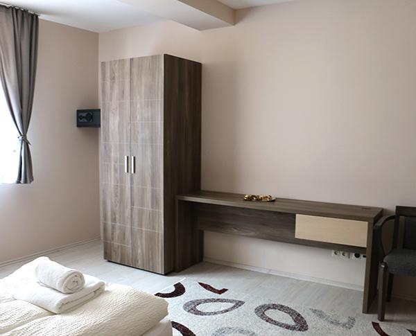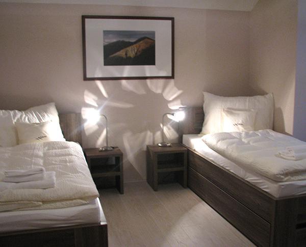 | Bedroom 2 | with two single beds, extra bed / standard bed /, bedside tables with table lamps, wardrobe, desk with a chair, extra single bed or just +1 bed |