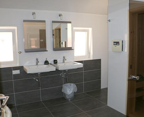 | Bathroom | with shower, two separate sinks, electric drying ladder, hairdryer |